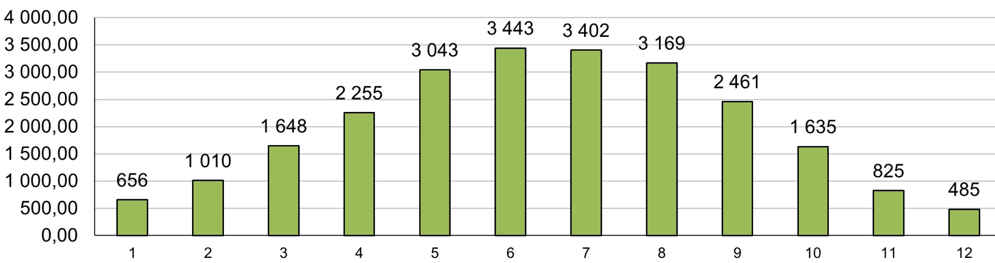 - Минимальная выработка летом – 102,24 кВт в сутки